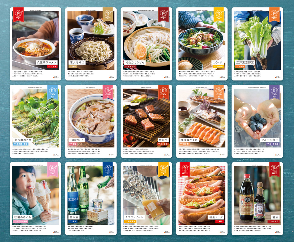 東京多摩を楽しむ図鑑カード、昨年の自然編に続き、2020年は食べる編と遊ぶ編。食べる編では、ご当地麺、ブランド牛、旬の野菜と果実、地酒など、多摩エリアの多様な食文化にまつわる15のコースを提案しています。