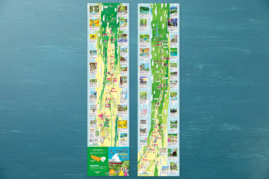 新宿を起点に多摩に向かう沿線マップ。昨年の中央線・西武線編に続き、2020年は東京を代表する自然スポットを数多く有するJR青梅線・五日市線編。沿線沿いの鳥瞰図と、周辺おすすめスポット、そして、実際に電車の窓から見える「アレなに?」なスポットが描かれています。