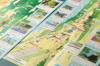 昨年よりも二折り分長くなり、広げるとなかなかのボリューム。イラストだけで構成されるマップのため、ひたすら描いて描いて…の日々。試行錯誤していた昨年よりもスピードは上がったものの、普段デザイン作業ばかりしている身には「絵描きモード」のスイッチの切り替えに毎年苦労してしまいますが、その分完成した時の開放感もひとしおです(笑)