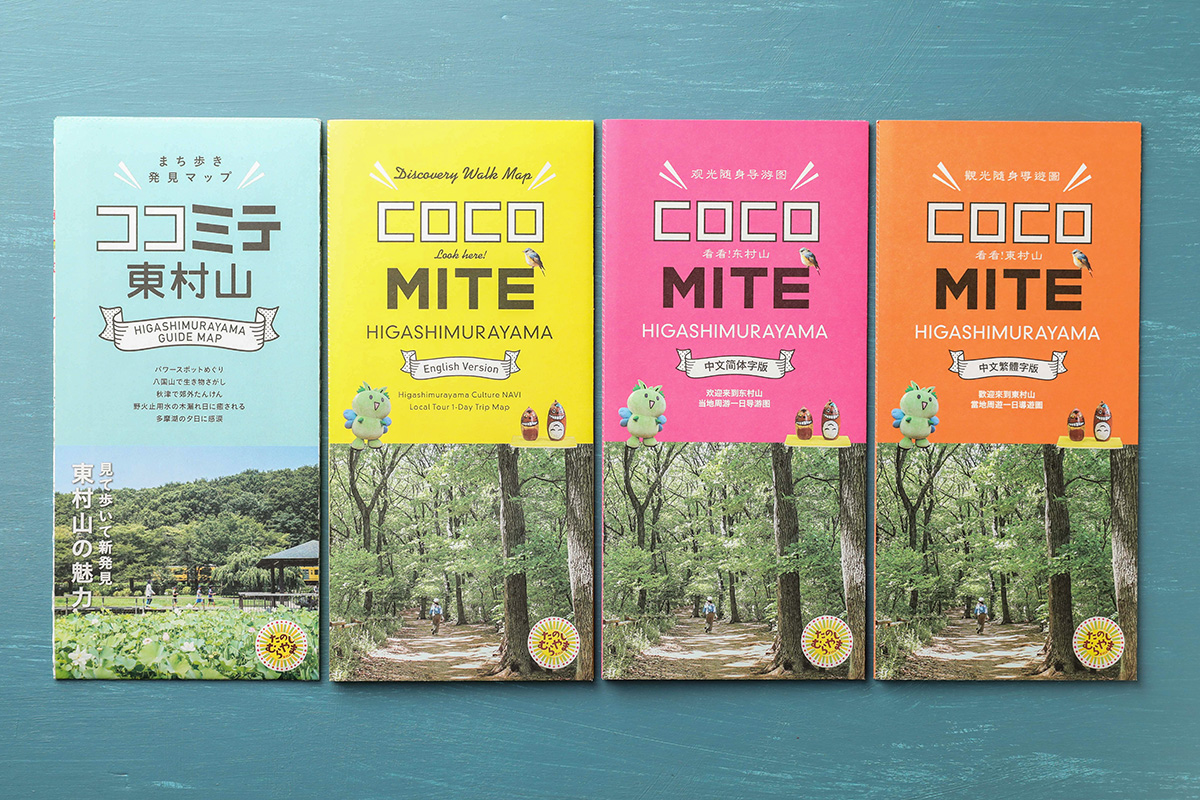 今回は通常版の更新に加え、英語版、中国語(簡体字、繁体字)版も登場。東村山のおすすめスポットを厳選しました。市役所や図書館などで全種類並んでるとカラフルで、なかなかかわいいです。