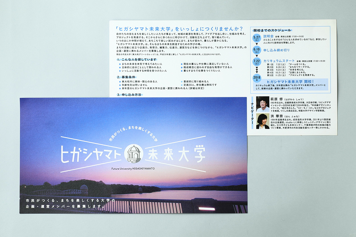 東大和市の公民館事業「市民がつくる。まちを楽しくする市民大学をつくろう」プロジェクトのキックオフビジュアルを担当しました。市民自らがまちを知り、課題や可能性を考えて、どんな学びや気づきが生まれるのか。今後の展開も楽しみな市民大学プロジェクトです。