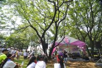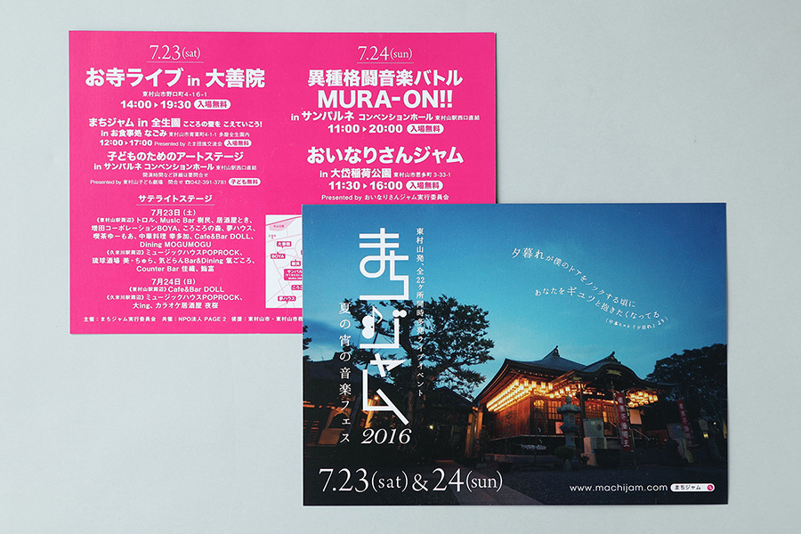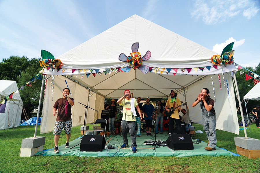 ハチコクの2人はともに初年度から実行委員会に参加し、イベントの企画、運営、広報からデザイン、雑務まで幅広く活動。仲は初年度の都立中央公園、2年目の八国山緑地、2016〜17年の大善院など野外ステージのオーガナイズも担当させていただきました。