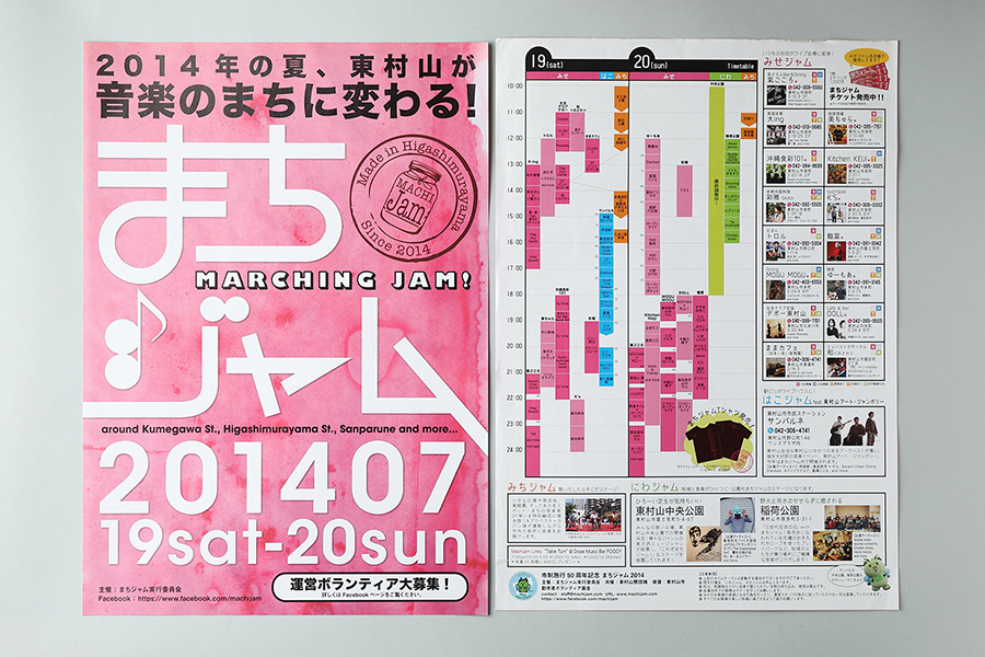 「音楽で人とまちがつながる」をコンセプトに、公園、お寺、駅前、駅ビル、居酒屋、絵本屋、ミュージックハウス、全生園など、市内約20ヶ所で開催される同時多発ライブイベント。まちジャムは、東村山に暮らす普通の人たちが手作りするイベントです。音楽が好きで、モノを作ることが好きで、まちに愛着を持つ人たちが、このまちがもっと面白くなったらいいなぁという想いで集まりました。